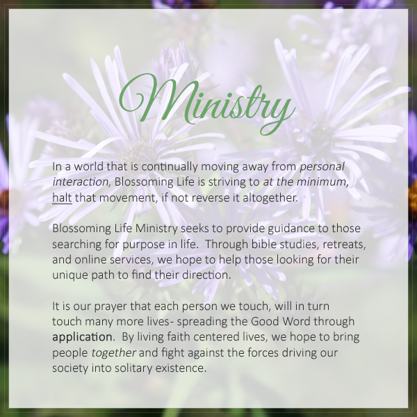 Blossoming Life Ministry is rooted in the Word of Jesus Christ, The True Vine.