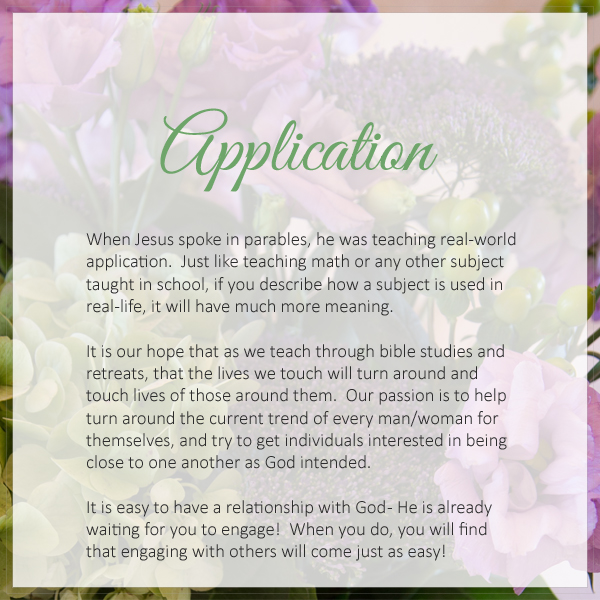It is our belief that anything taught is easier to grasp when examples of its real life application are used. This is why Jesus used parables to teach. We believe everyone has a story to tell that will inspire and provide guidance.