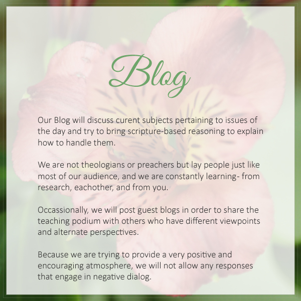 In addition to our blogs, Karen writes a daily message. To read her "Daily Sprinkling of Scripture"... CLICK HERE!